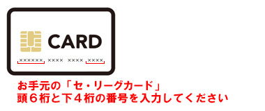 認証番号(JCBセントラル・リーグオフィシャルカードの頭6桁と下4桁)を入力してください。
